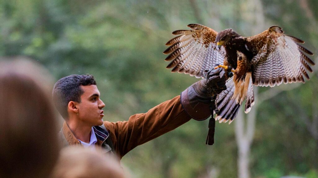 O Voo das Aves de Rapina proporciona uma experiência única, unindo educação ambiental e o contexto histórico da falcoaria.