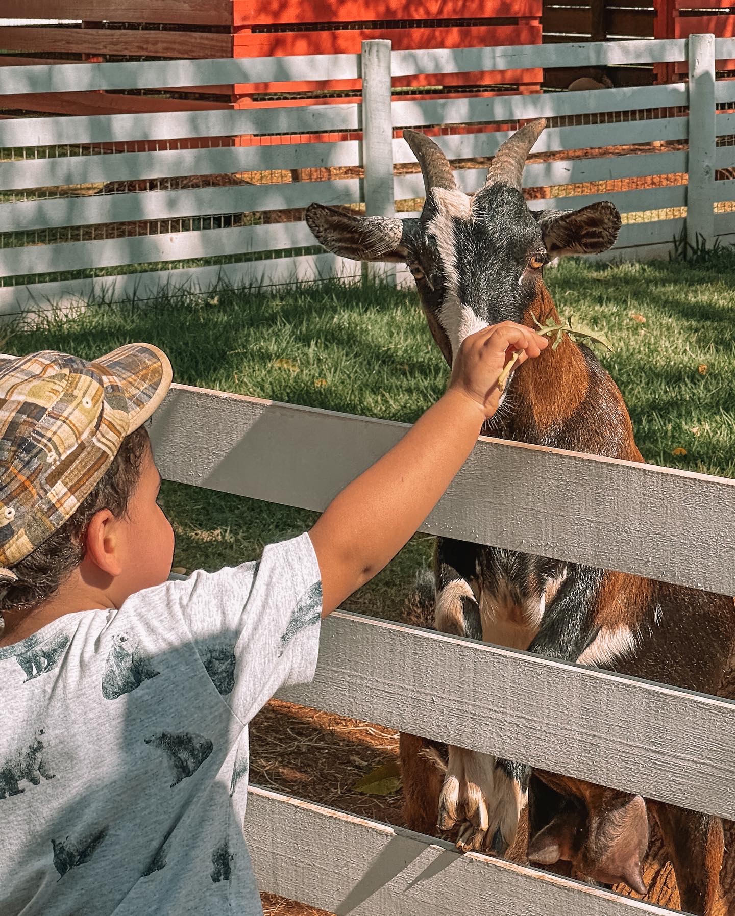 Hora de muita alegria com os cabrinhas! As famílias participam da alimentação, oferecendo folhas para as cabras e aprendem sobre comportamento desses animais.